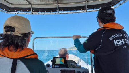 Fiscalização da APA da Baleia Franca identificou atividade dentro de 1 milha náutica, área onde a pesca é proibida por norma federal.