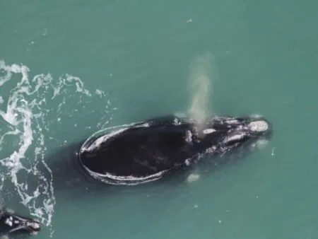 Monitoramento aéreo registra 185 baleias-francas no litoral sul em setembro