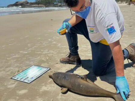 Animal apresentava lesões compatíveis com interação com pesca e teve morte confirmada por afogamento, segundo equipe técnica.