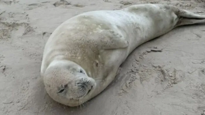 Animal foi avistado descansando dentro da área central da APA da Baleia Franca e vem sendo monitorado por equipes do PMP-BS e voluntários.
