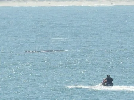 Ibama multa condutor de moto aquática por se aproximar de baleias em Garopaba