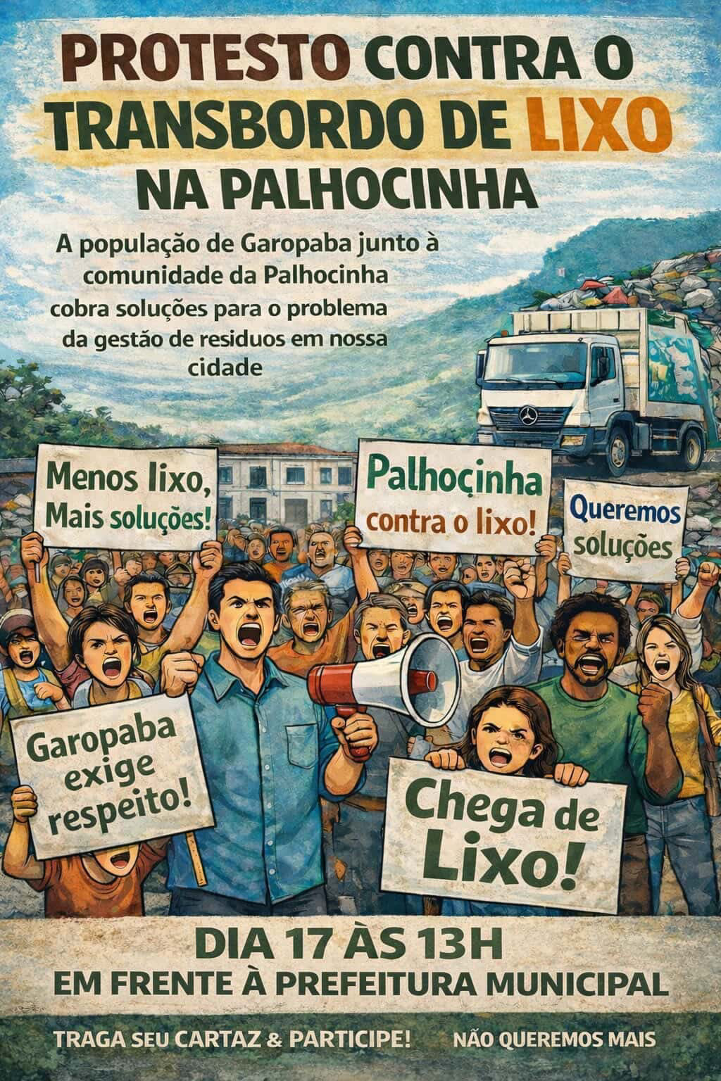 Moradores do bairro Areias de Palhocinha, em Garopaba, estão se mobilizando para realizar uma manifestação na sexta-feira (17), às 13h, em frente à Prefeitura Municipal. O ato foi convocado em meio a uma série de reclamações relacionadas à coleta de lixo e ao manejo de resíduos no município.