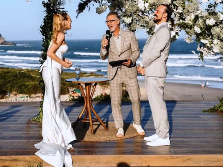 Gabriel o Pensador e a garopabense Gabriela Vicente oficializaram a união na quinta-feira (20), durante cerimônia realizada na Praia do Rosa, em Imbituba. O casamento ocorreu no fim da tarde, conforme publicação do músico nas redes sociais, e foi conduzido pelo ator Nelson Freitas.