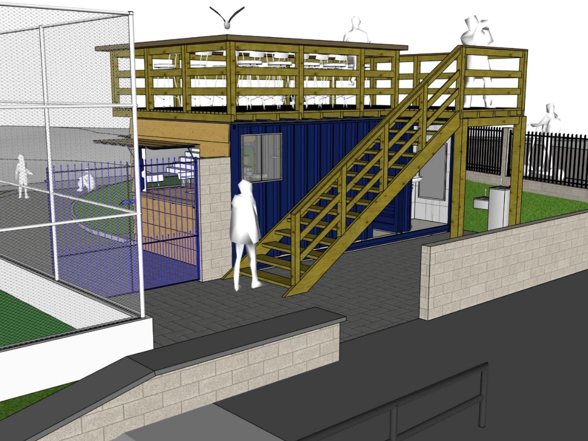 O projeto da infraestrutura do entorno da pista de skate prevê a instalação de um módulo em container de 3×6 metros revestido em madeira, que servirá como base de apoio para gestão da pista. De acordo com o projeto, o container contará com um banheiro acessível e um pequeno ponto de alimentação, cuja concessão será aberta à iniciativa privada.