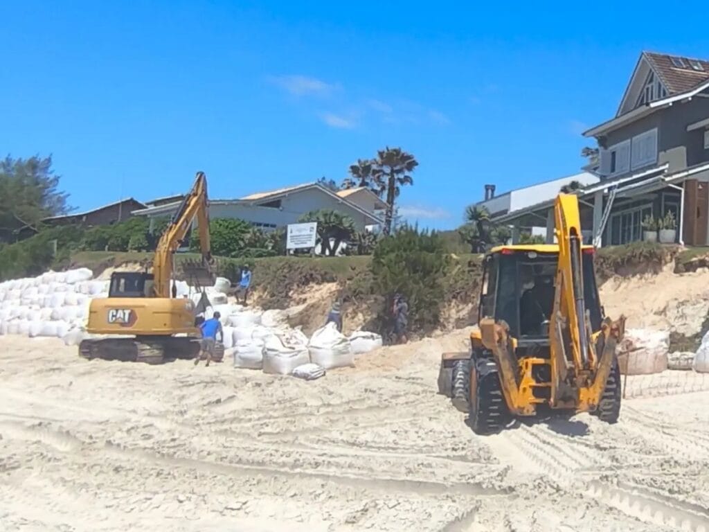 Desde a terça-feira (15), moradores relataram à redação do Garopaba.sc a movimentação de caminhões e máquinas na área, transportando areia e posicionando os bags ao longo da faixa de praia. Os trabalhos se concentram no trecho mais afetado pelas ressacas registradas desde julho, que vêm provocando redução da faixa de areia, destruição da vegetação de restinga e exposição das fundações de muros dos imóveis localizados próximos à linha da maré.