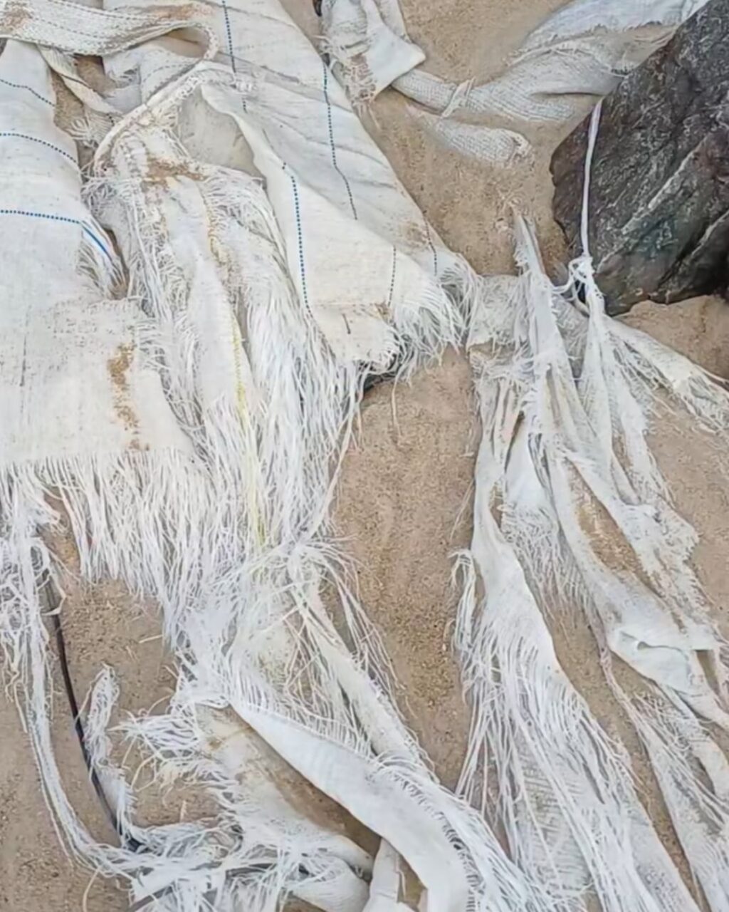 Na mesma linha, o biólogo Cássio S. Sartori de Garopaba explicou à nossa redação que os sacos, comumente fabricados em poliéster, polipropileno ou polietileno de alta densidade, são plásticos sintéticos derivados do petróleo. Quando se rompem, liberam fragmentos que se transformam em microplásticos — partículas que permanecem por longos períodos no ambiente marinho.