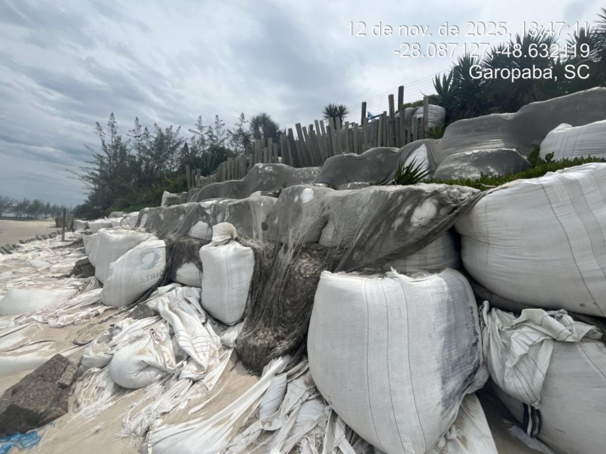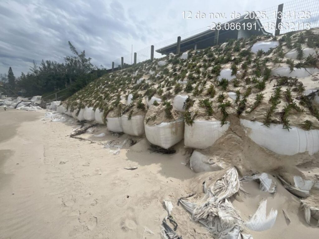 O documento aponta que o Decreto nº 273/2025, utilizado pelo município para autorizar medidas emergenciais nas áreas costeiras, encontra-se vencido. Além disso, o IMA destaca que a situação atual das contenções já era conhecida em ações civis públicas, incluindo o processo nº 5004849-48.2024.4.04.7207/SC, que desde 2022 descreve os potenciais impactos ambientais na região.