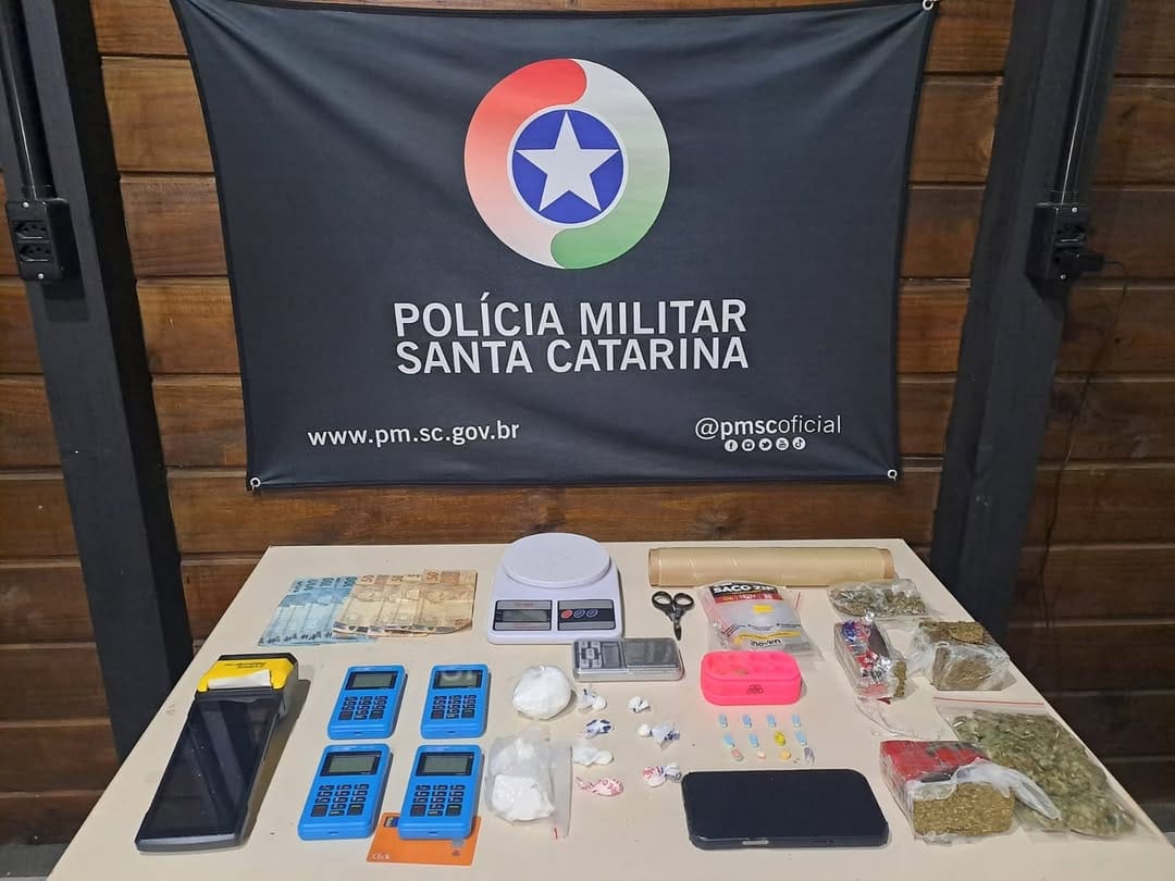 No local, foram apreendidos porções de maconha, cocaína, comprimidos de ecstasy, balanças de precisão e outros objetos relacionados ao tráfico. O homem recebeu voz de prisão e foi encaminhado à Delegacia de Polícia Civil de Garopaba, onde foram realizados os procedimentos legais.