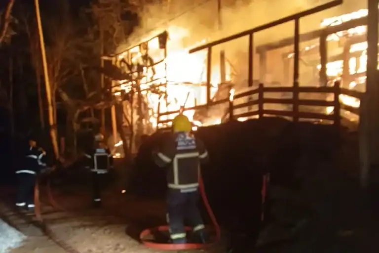 Quando os bombeiros chegaram ao local, encontraram dois imóveis já em chamas: um consultório com cerca de 40 metros quadrados e uma residência de aproximadamente 70 metros quadrados. Ambos estavam situados no mesmo terreno.