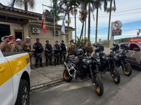 Ação conjunta realizada em Garopaba nesta quinta-feira (2) fiscalizou motocicletas irregulares, resultando em apreensões, prisões e recuperação de veículo com registro de furto.