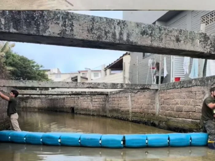 IMAG instala barreira ecológica no Rio Garopaba para conter lixo antes de chegar ao mar