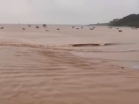 Chuva arrasta terra de obras e deixa água marrom na Praia Central de Garopaba
