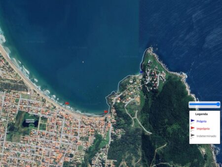 Relatório reúne coletas feitas nesta segunda-feira (29) e indica que Garopaba teve três pontos próprios e dois impróprios para banho.