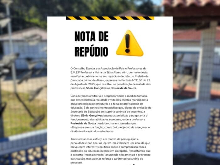 Comissão escolar divulga nota de repúdio à decisão do prefeito de Garopaba sobre penalidades aplicadas a servidoras